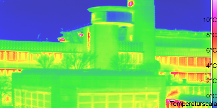 Die tatsächlichen Temperaturunterschiede auf der Fassade betragen 5 K.